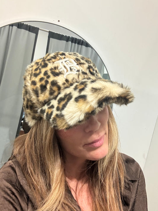 R13 Leopard Print Faux Fur Cap