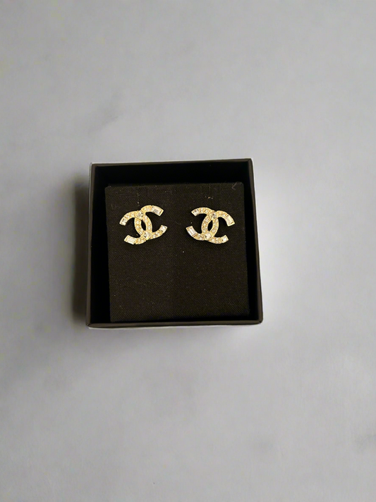 CHANEL CC Large Rhinestone Studded earrings