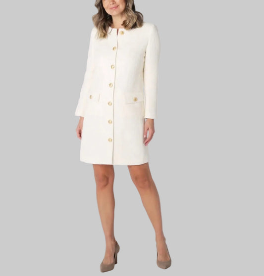 JUDITH & CHARLES Cream Tweed Jacket Dress - Size 10