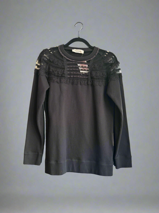 VALENTINO Lace Trim Sweatshirt - Size XS