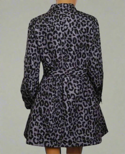 PRADA Silk Grey Leopard Print Trench - Size 42