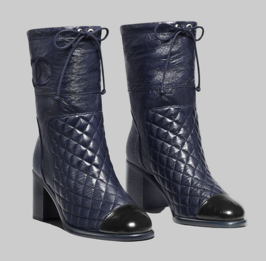 Chanel Crinkle Quilted Cap Toe Leather Boots - Size 39.5