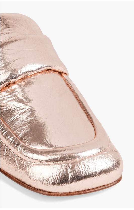 DRIES VAN NOTEN Metallic padded crinkled-leather loafers - Size 37