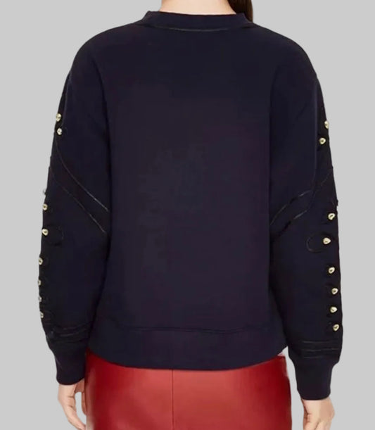 SANDRO Natty Embroidered Rhinestone Navy Pullover - Size S