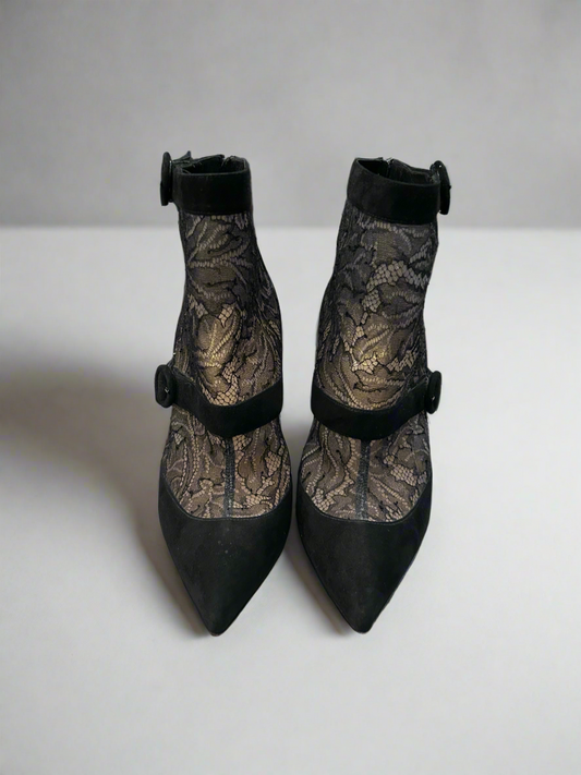 CHRISTIAN LOUBOUTIN Lace Suede Bootie - Size 39