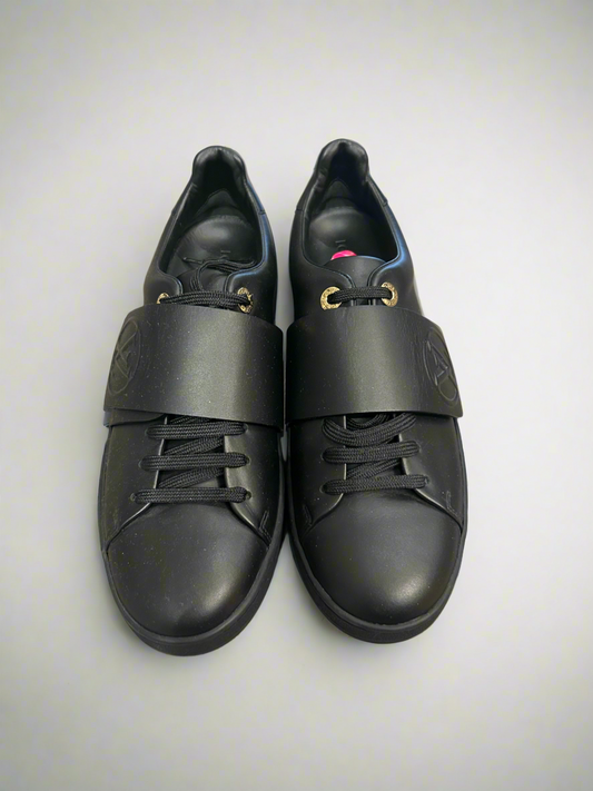 LOUIS VUITTON Black Leather Sneakers - Size 37.5