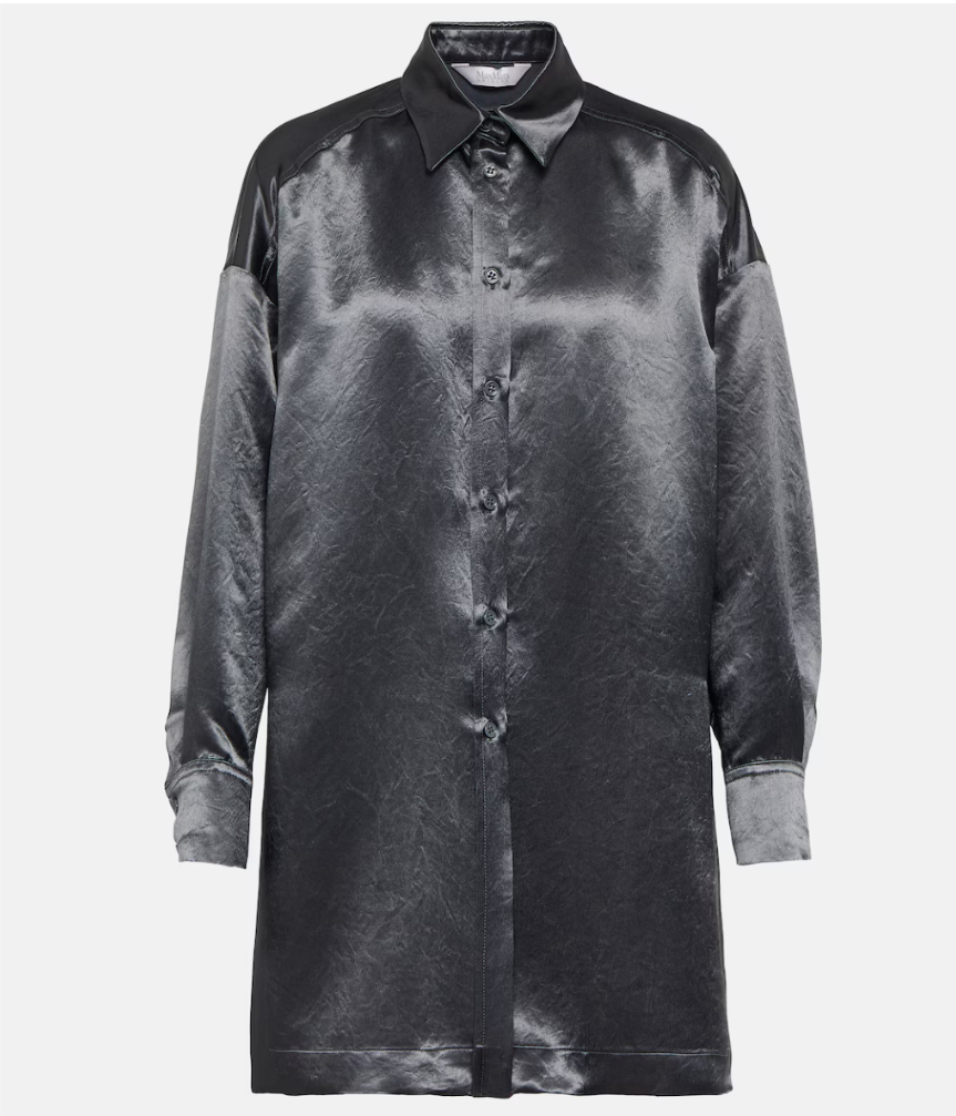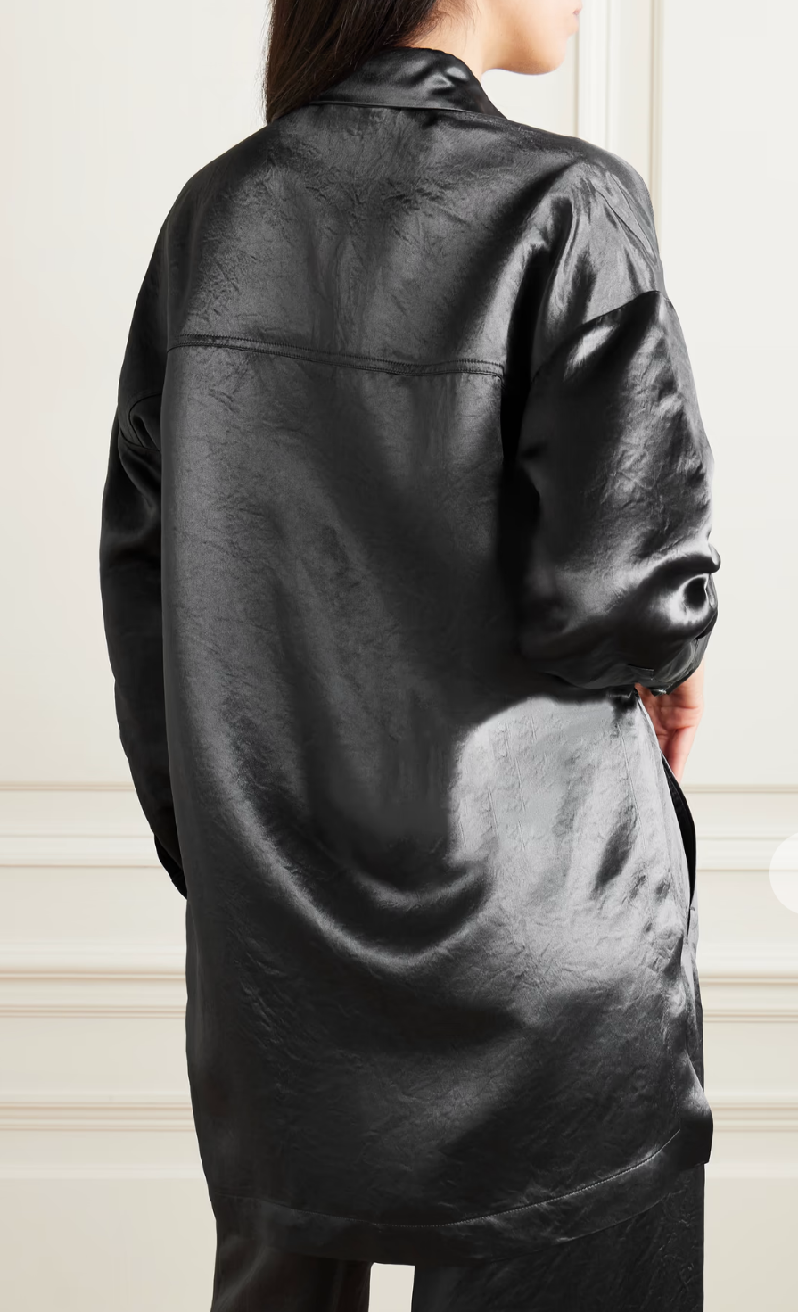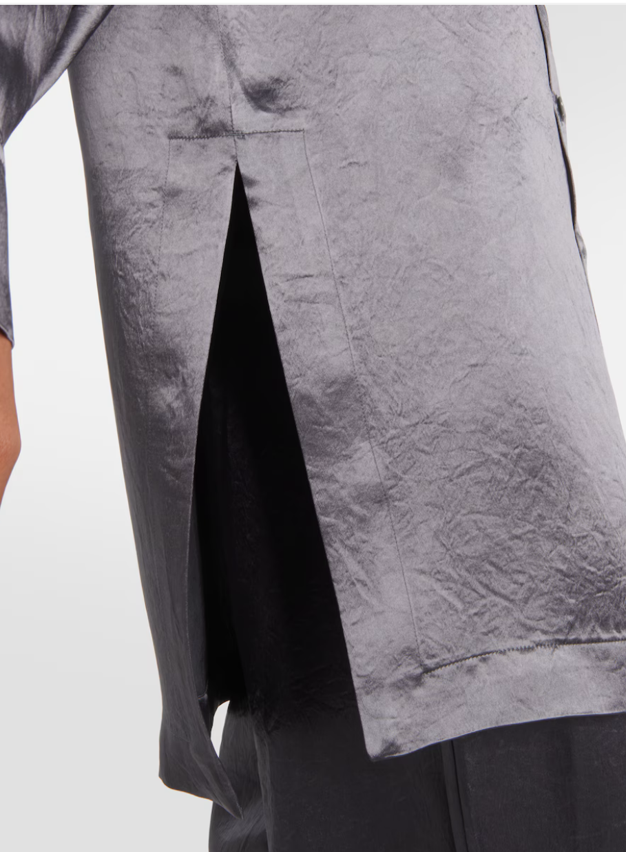 Lustrous and polished, the Bacio shirt is made from satin fabric and features a fluid silhouette with a buttoned front. Material: 100% acetate. Made in Romania