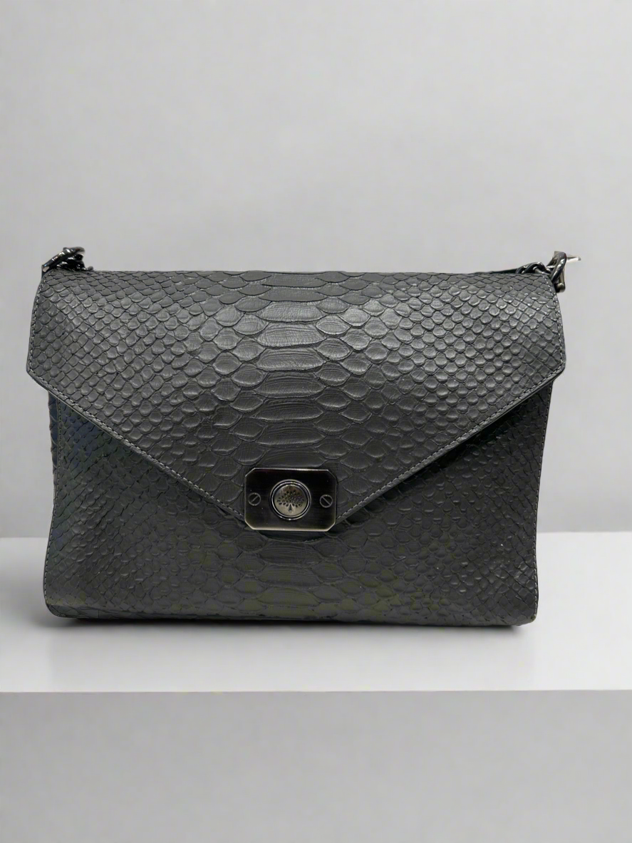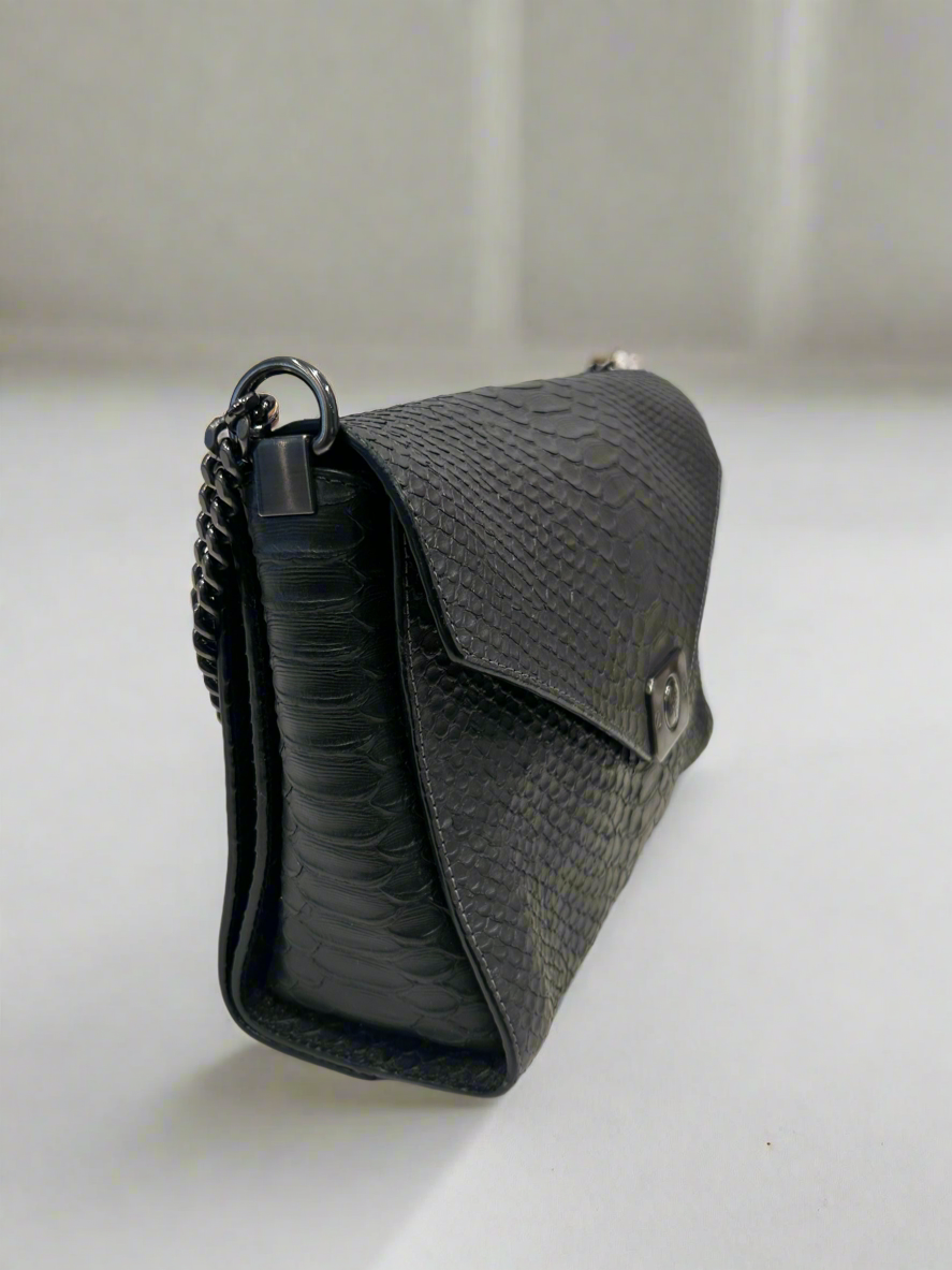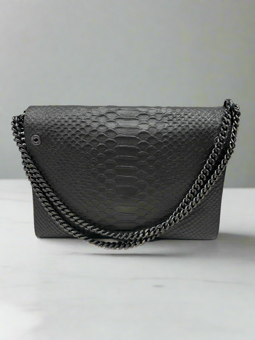 Black and Grey reversible Snakeskin shoulder bag with chain