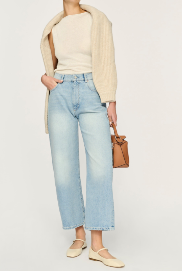 The Taylor Barrel by DL1961 is an ultra-high-waisted cut with a barrel leg for a casual look. Its Vintage Light color is a bright indigo wash with authentic character and subtle fading and whiskering. It features a matte silver zip and matte copper rivets, multicoloured stitching, a sleek hem and an ecru patch on the back.