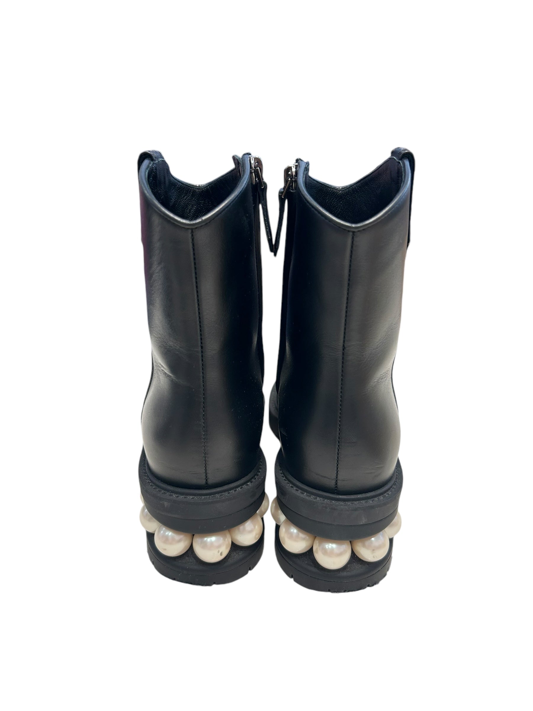 Nicholas Kirkwood Pearl-Embellished Ankle Boots in Black Leather