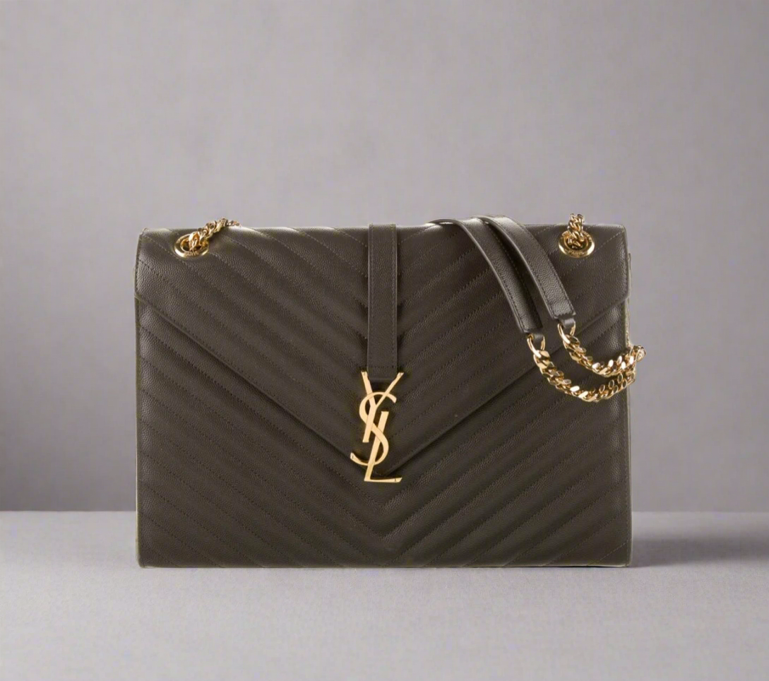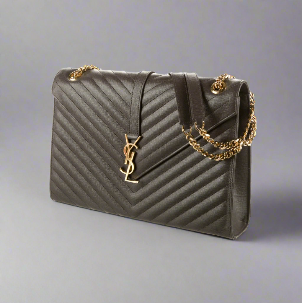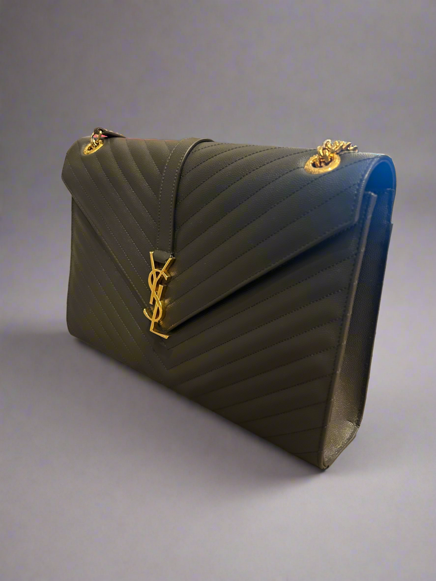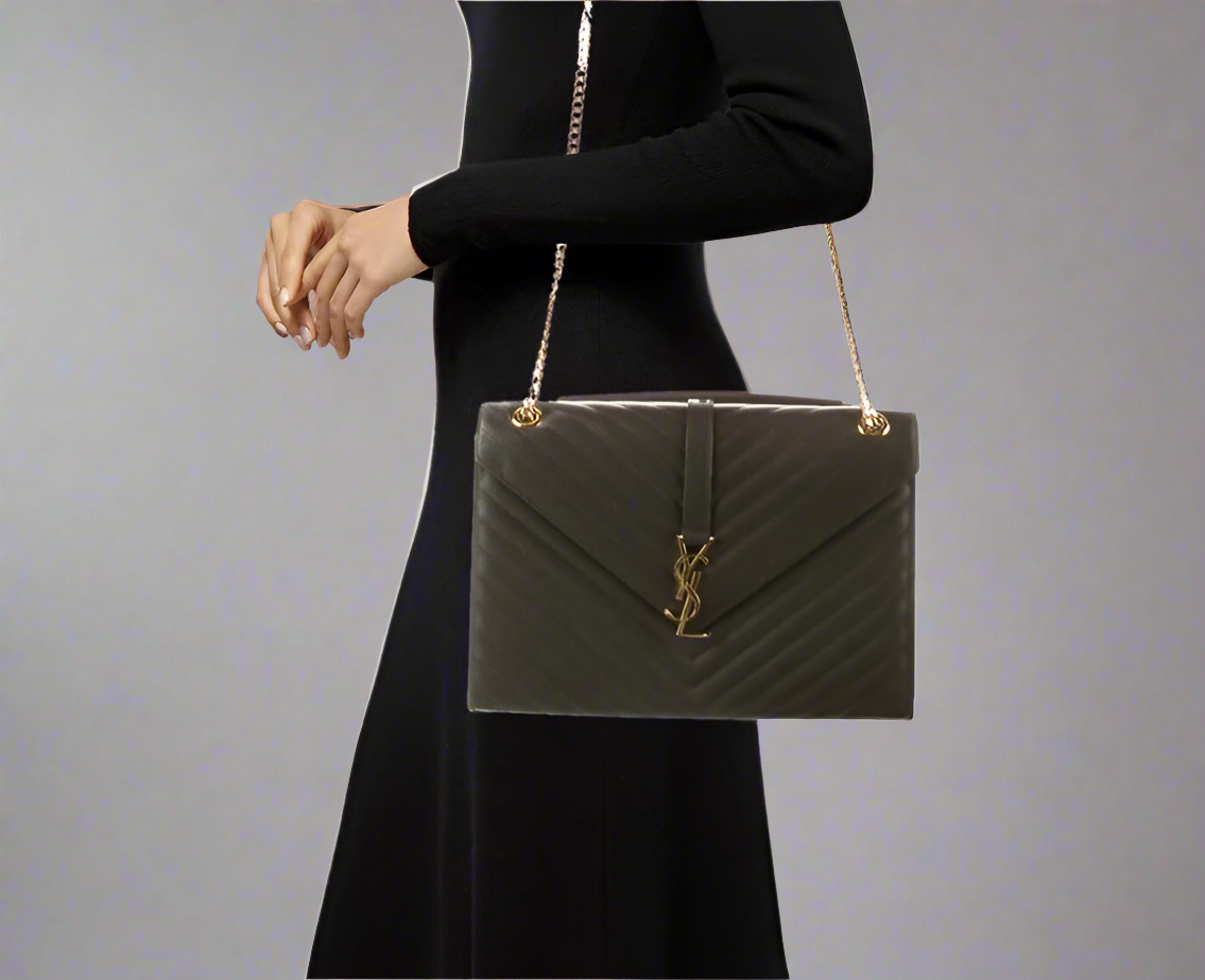 SAINT LAURENT Grey Cheveron Envelope Bag